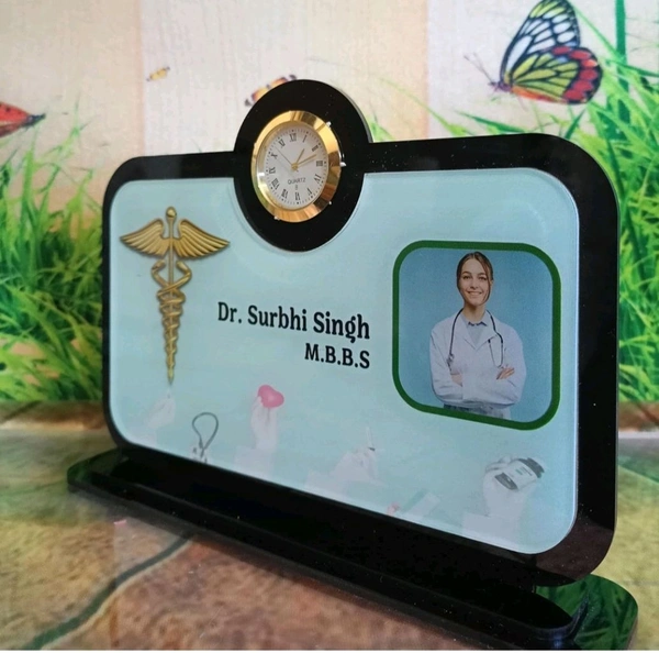 Table Top Doctor Name Board With Clock